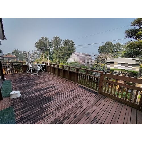 広々ウッドデッキ温泉付