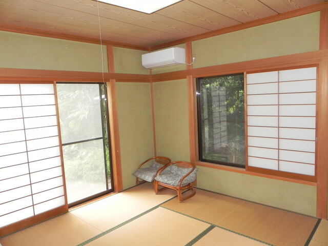 | 担当者より一言 2階より海大島を望める山荘です。約20帖リビングには薪ストーブがあります。大理石仕上げの浴槽で温泉を堪能できます。敷地には広くはありませんが家庭菜園を楽しめるスペース有り。各居室収納スペース有り。バス停まで約300m。定住者も居る明るく開けた住環境です。建物は所々傷みが気になる点もありますがそのままのご利用も可能です。 |